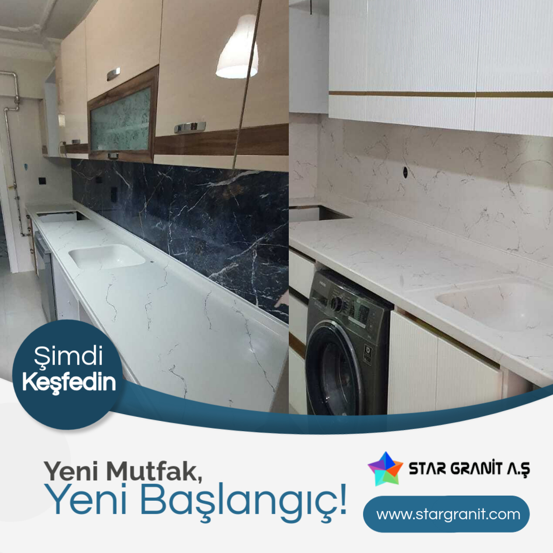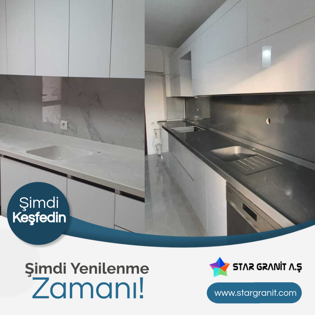 Star Graniart | Mutfak Tezgahları | Mermerit Tezgah, Decopol Tezgah, Akrilik Tezgah, Çimstone Tezgah, Mutfak Dolapları, Banyo Dolabı, Cam Balkon, Çelik Kapı, Panel Kapı, Tezgah Arası Cam, Duşakabin, Menteşeli Duşakabin, Sürgülü Duşakabin